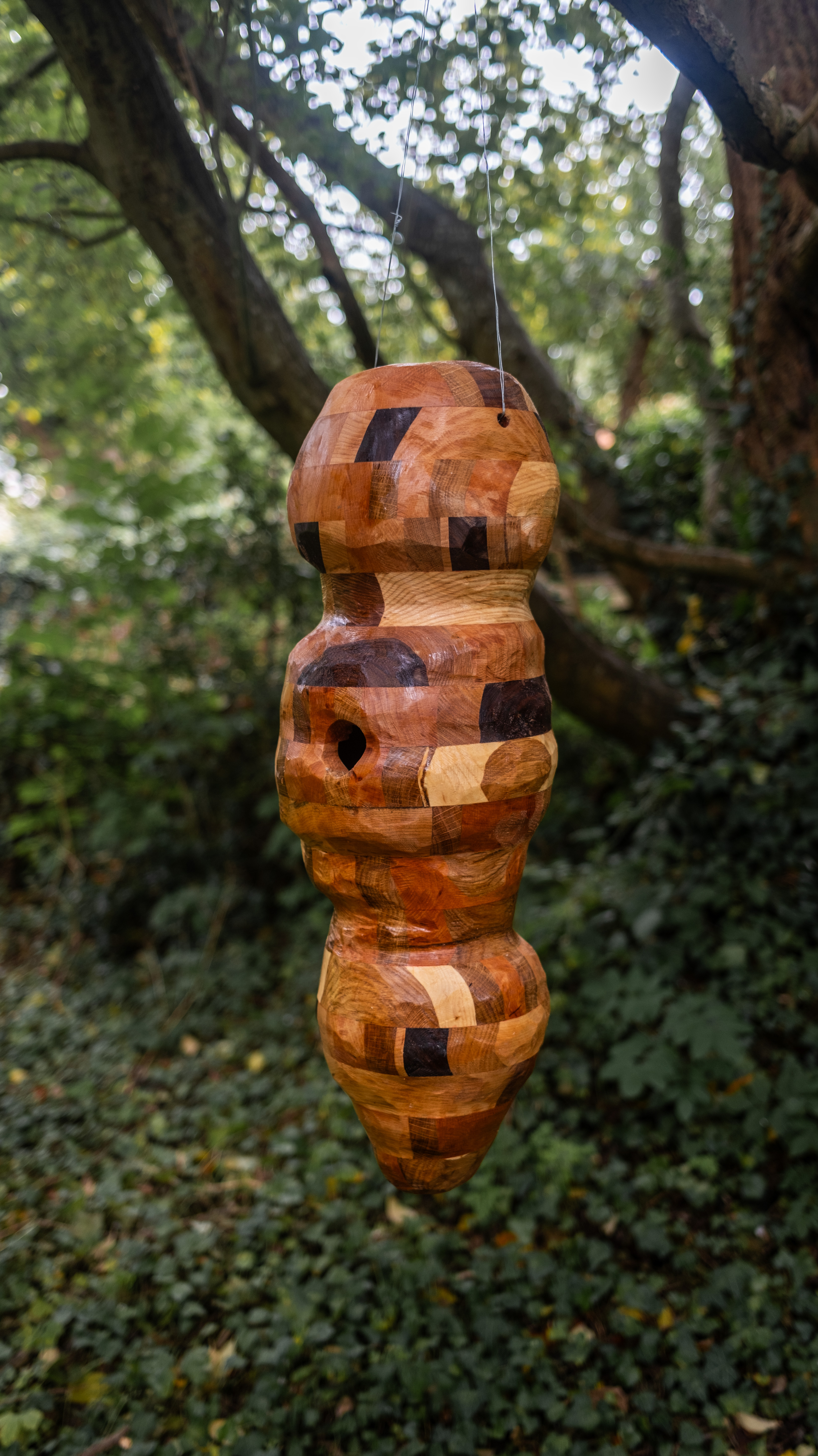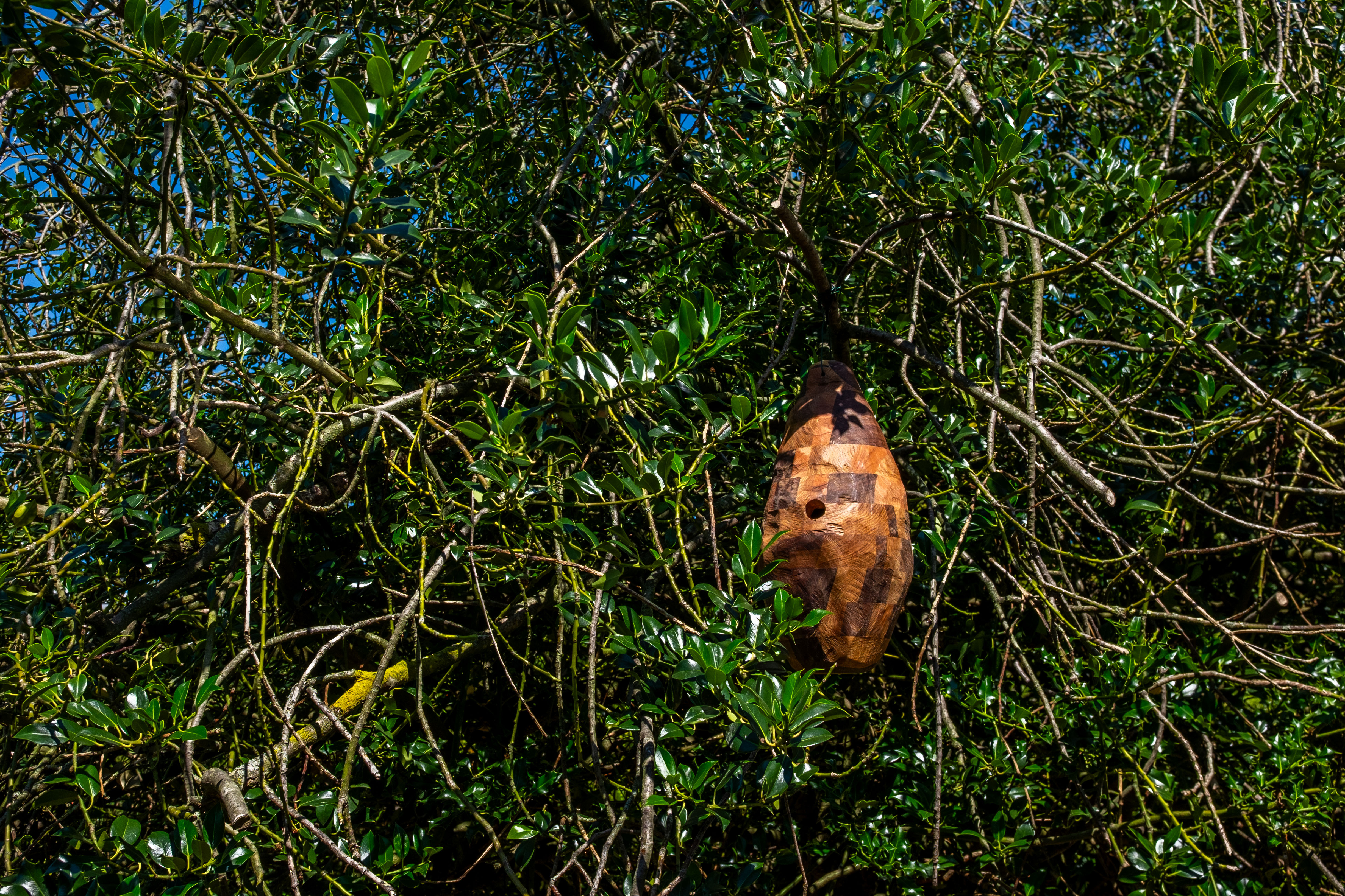 There is a bird housing crisis. Deforestation of mature woodland is putting pressure on available nesting spaces, especially within urban settings. Birdhives is a collaboration between our fine feathered friends and two makers with bird toponyms. Crafted by David Swallow and designed by Christie Swallow, the series takes inspiration from more-than-human design practices of nests, hives and other dwellings to create remedial housing infrastructure. Each hive is composed of discarded hardwoods, making use of scraps otherwise too small to have "productive" value, which are then composed into strips, CNC cut and then hand carved to create a form that appears both artificial and organic.