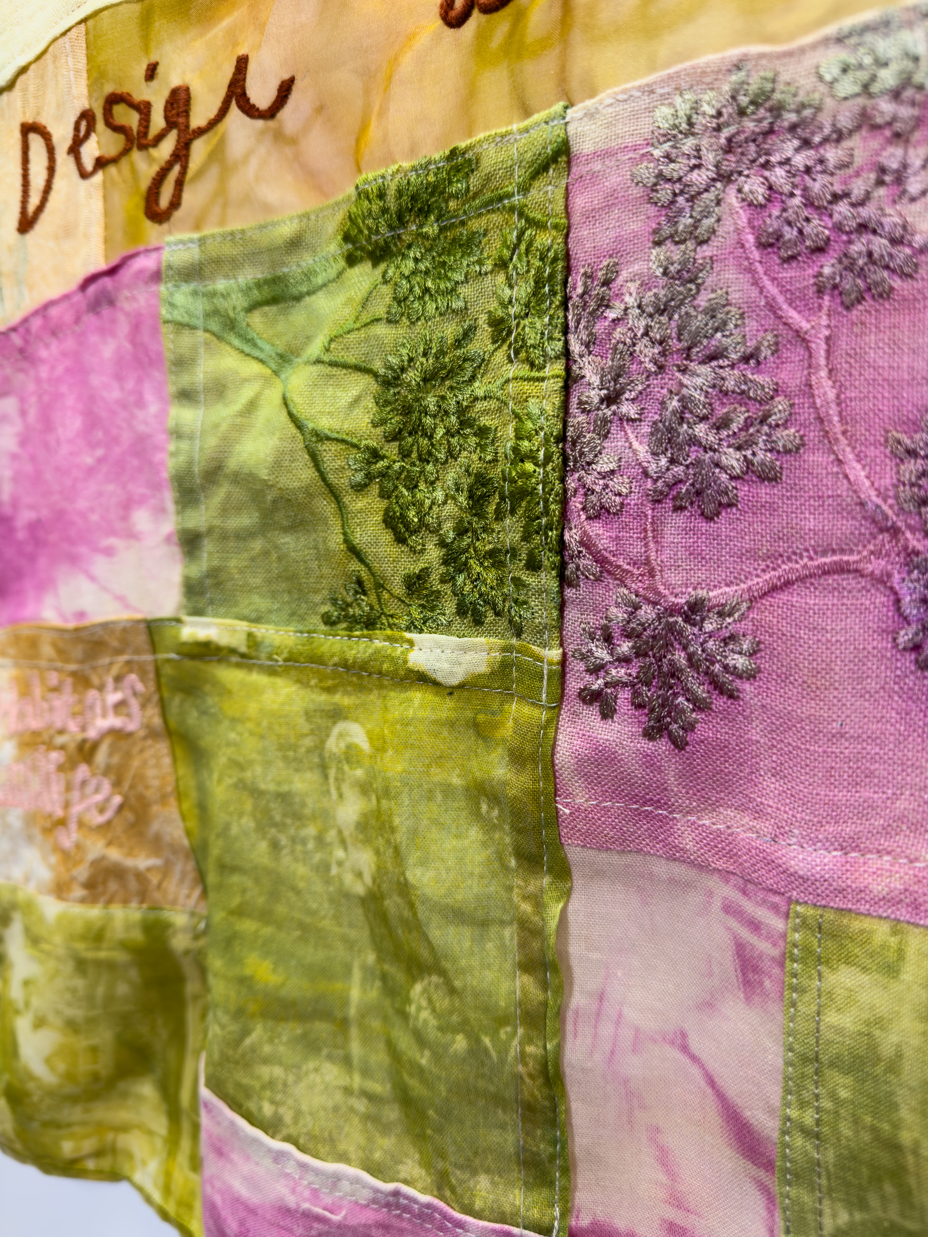Natural Dye and sunprint on Upcycled Cotton, Linen and Silk, 1000x1500mm, 2025